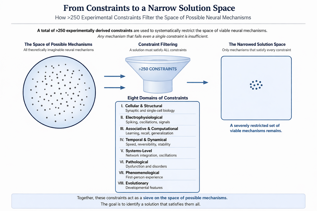 Constraints derived from over 250 experimental findings correlated with behaviors indicative of the generation of first-person properties are examined. Of these, nearly 50 were used to systematically restrict the space of a unique viable solution capable of generating both behavior and first-person properties. It is expected that constraints from the remaining findings will reveal features enabling seamless interconnections.